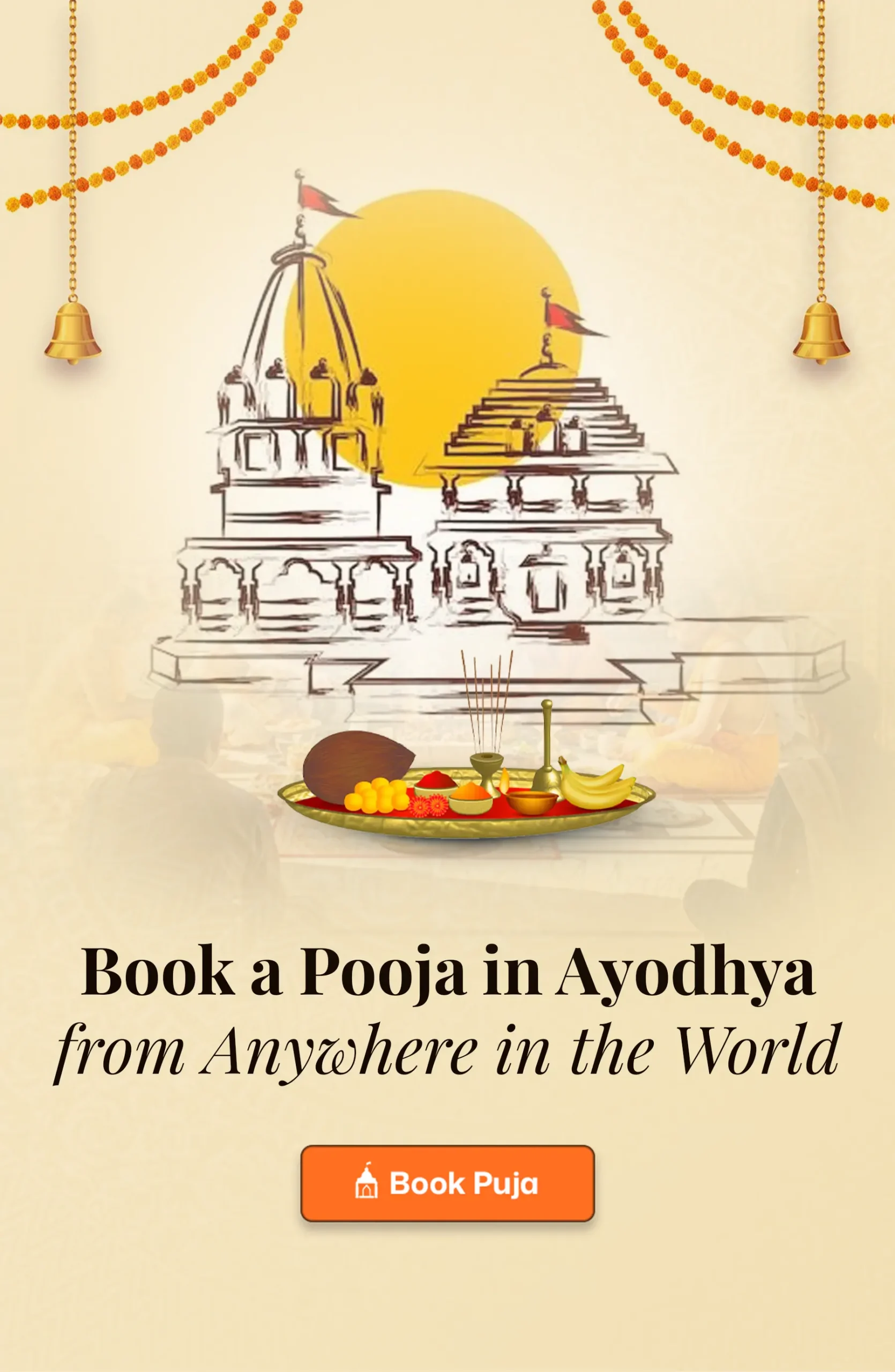 We take your devotion to Ayodhya’s sacred temples. Select a puja you wish to participate in, and our learned pandits will perform it on your behalf.
