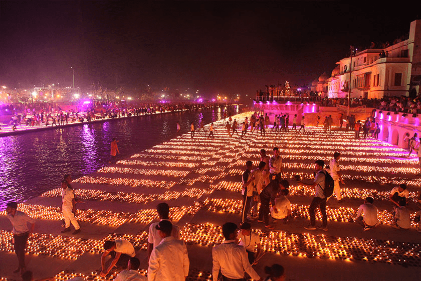 The Ayodhya Deepotsav takes place at the Saryu river ghats.