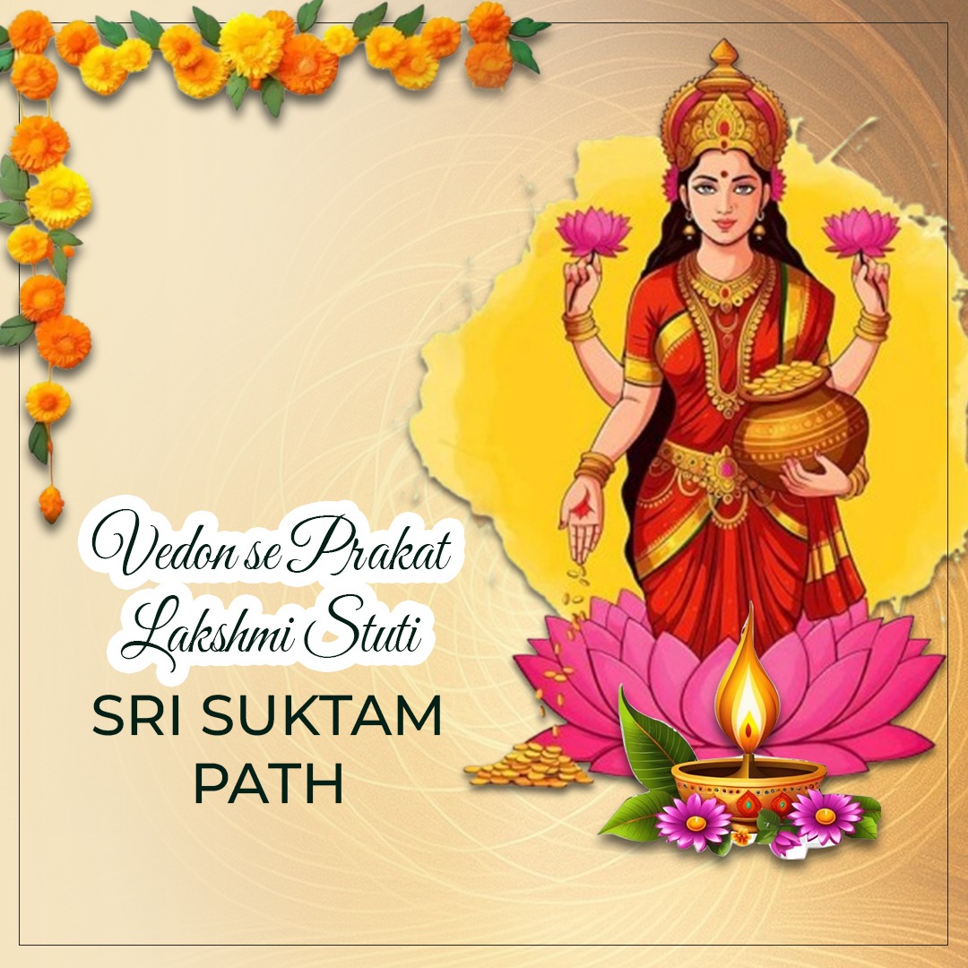 Mahalakshmi is the goddess of wealth, prosperity, and fortune. The Sri Suktam Path is a powerful hymn that sings the praises of the Goddess Mahalakshmi. It is also known as the Lakshmi Suktam. By chanting Sri Suktam with devotion, one receives the blessings of Goddess Lakshmi. Poverty and financial struggles are removed, wealth and harmony increase, and your life will be filled with peace and joy.